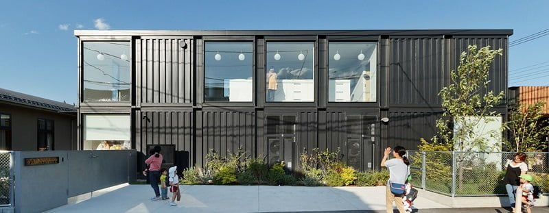 Este jardín de infantes, en Saitama, fue renovado por HIBINOSEKKEI + Youji no Shiro utilizando contenedores apilados que rodean un patio central. Todas las aulas se abren a una terraza exterior con sombra que conduce al patio. El edificio también contiene un salón de usos múltiples de 364 metros cuadrados y oficinas en el piso superior.