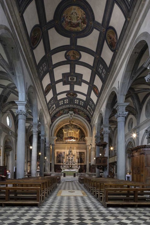 - San Miniato al Monte, Italia: Presenta una nave con bóveda de cañón sobre columnas.